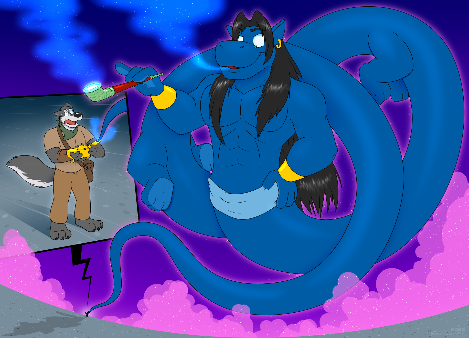 I’m a genie cat of the lamp who loves shrinking, otherwise how do you want to fit in an itty bitty space. My signature move is the smoke coming out of my kiseru (smoke pipe) it have shrinking magic so I just have to blow some on people to make them smaller.