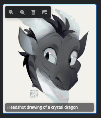 [1]This image was reduced to 75% scale, with an alt text added as “Headshot drawing of a crystal dragon“